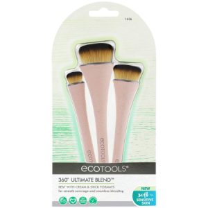 EcoTools New 360 Ultimate Blend is a kit designed with 3 tightly fitting domed brush heads for a fast application with a perfectly blended finish.