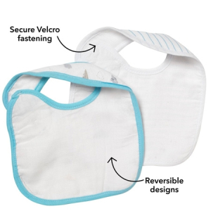 This pack of Snug n' Dry bibs from Nuby is made from a comfortable muslin material that is particularly well suited to absorb water and collect dirt. It has a smart hook-and-loop fastening on the side so you can easily wrap it around your baby's neck without any hassle and they can also be put in the washing machine. This pack comes with two bibs in cute blue designs with paper aeroplanes and stripes.