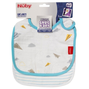 Nuby Muslin Snug n' Dry Bibs - 2 pack