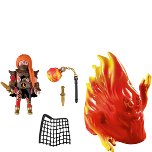 Playmobil Novelmore Burnham Warrior & Fire - 70227 offers lots of fun play for children over eight years old. Embark on wild adventures with Pyralia, the guardian of fire, who can control the dangerous fire creatures. But beware! Pyralia has a fiery temper that makes her unpredictable! Help Pyralia catch the fire monster, which also has a light that can be switched on and off.